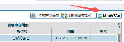 定位查询并选中对应的物料,选择后,点击“增加调整单”,进入下图所示页面;