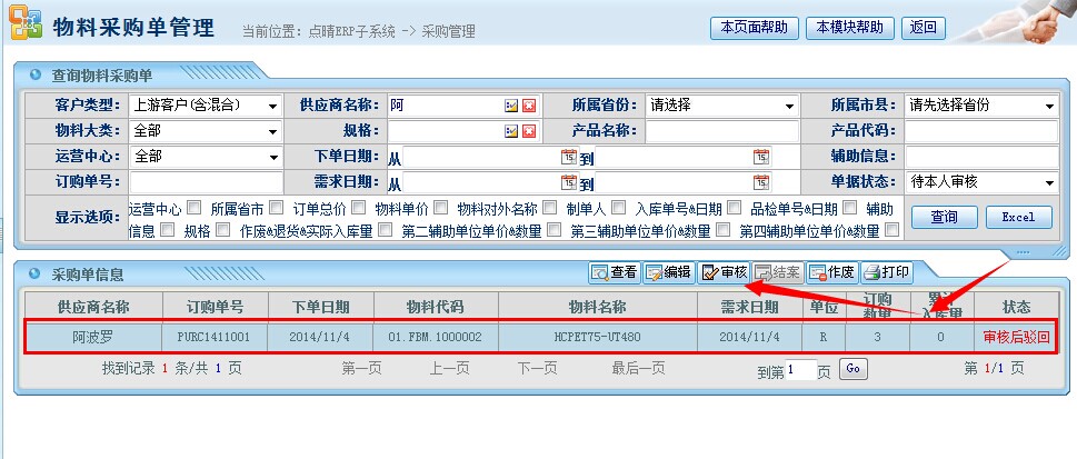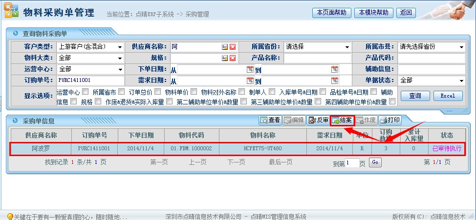 点晴模切ERP采购管理—采购单反审结案管理操作