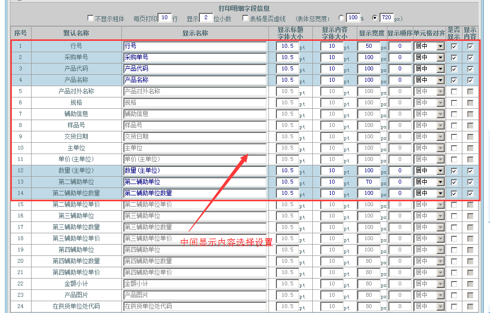 第三部分:中部显示内容设置,如下图所示: