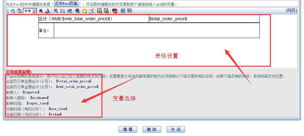 第四部分:表尾表格设置、表尾变量设置,如下图所示: