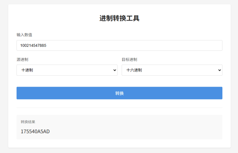 在日常开发、计算机学习以及底层调试场景中,不同进制之间的数值转换是一项高频且基础的需求。无论是嵌入式工程师处理寄存器数据,还是前端开发者解析颜色代码与权限掩码,都需要在二进制、八进制、十进制和十六进制之间快速切换。本文将介绍如何使用HTML、CSS和JavaScript实现一个进制转换工具。效果演示用户进入页面后,首先...