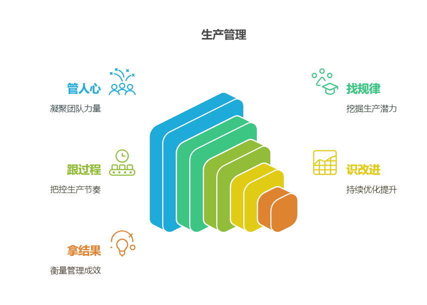 “管人心、跟过程、找规律、识改进、拿结果”是生产管理中非常重要的核心理念,涵盖了从人员管理到流程优化、从问题发现到结果交付的全过程。这五点相辅相成,构成了高效生产管理的基石。一管人心凝聚团队力量生产管理不仅是对生产流程的管理,更是对人的管理。员工是生产活动的核心,是生产的核心力量,他们的积极性、能力、态度直接影响生产效...