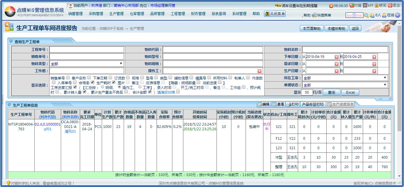 4. 车间作业管理:以确定的生产计划为核心,保证车间加工过程紧紧围绕生产计划进行,为离散式生产型工业企业提供自生产计划下达后,各生产线的工序计划及加工优先级的确定、分派、执行、流转。控制投入和产出的工作量,保持物流稳定,减少车间在制品并进行数据收集的全过程监督与控制的企业管理软件。旨在帮助企业加强工序级别的管理和控制,从而提高业务管理水平与生产效率、控制降低损耗与成本、提高产品质量与客户满意度。根据工序汇报中记录的完工产量和耗费工时,可以精确计算出每个工人的计时计件工资,并可以对生产过程中的报废进行工资的扣减处理.对车间经过加工的半成品不明原因的遗失,可以通过盘点类型的工序移转单进行数量的调整,保证车间帐物相符.并且可以通过车间在制品日报表了解车间在制品的存量,准确掌控车间的生产进度。
